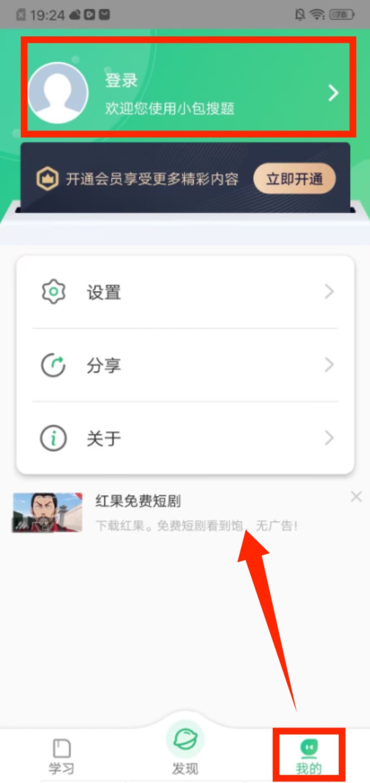 4、进入 “我的” 页面,点击 “登录” 完成账号操作后,可管理个人设置、查看会员相关权益。