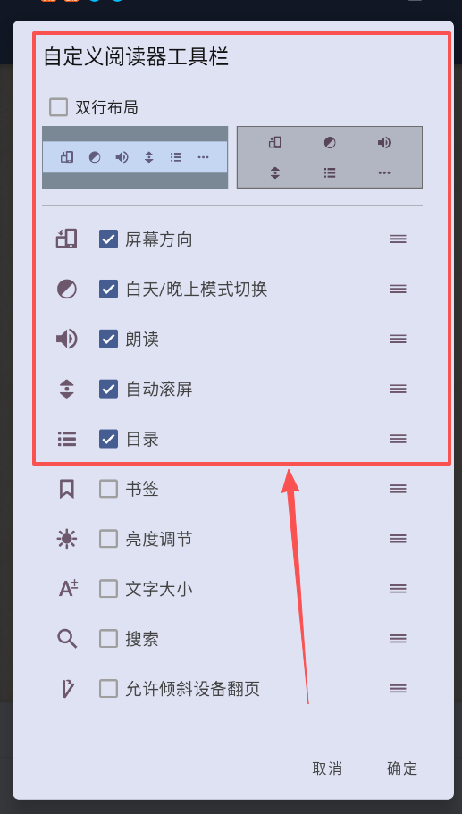 3、要是希望阅读体验更舒适,别忘了自定义工具栏,把日夜模式切换、字体大小调整和亮度调节这些功能放到顺手的位置,方便你依据不同光线随时进行设置。