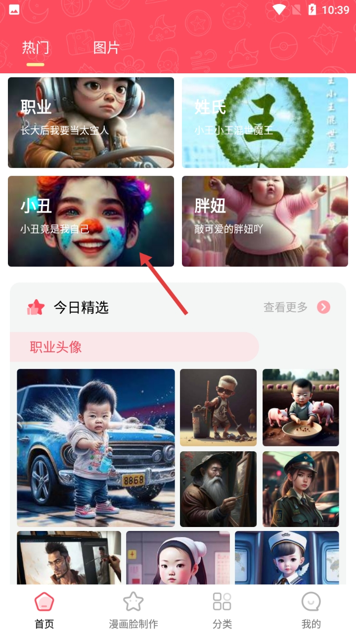 1、进入软件首页,在热门分类里选感兴趣主题,如【小丑】,进入详情页。