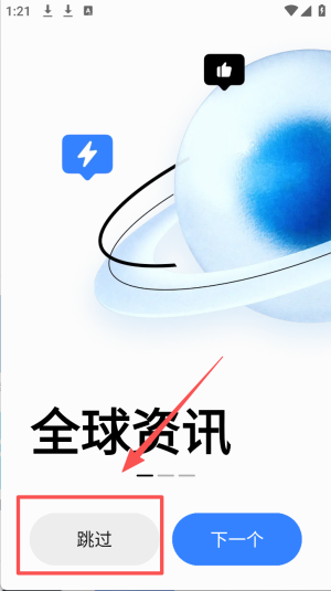 1、点击“跳过”按钮,跳过当前的欢迎界面。