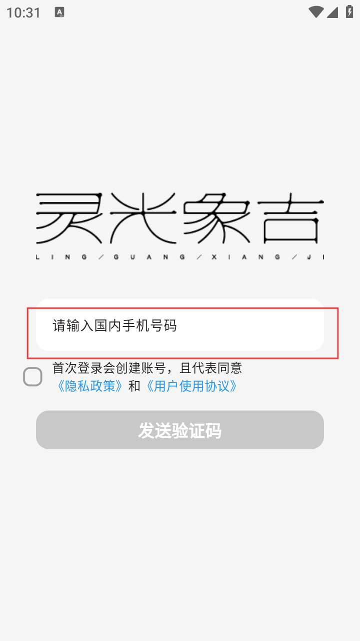 3、在登录注册页面,输入国内手机号码,勾选“首次登录会创建账号,且代表同意《隐私政策》和《用户使用协议》”。