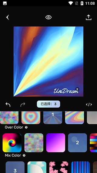 3、可以叠加多种艺术效果,选好后点击图片上方小眼睛图标可以预览效果,点击右上角保存或者分享作品;