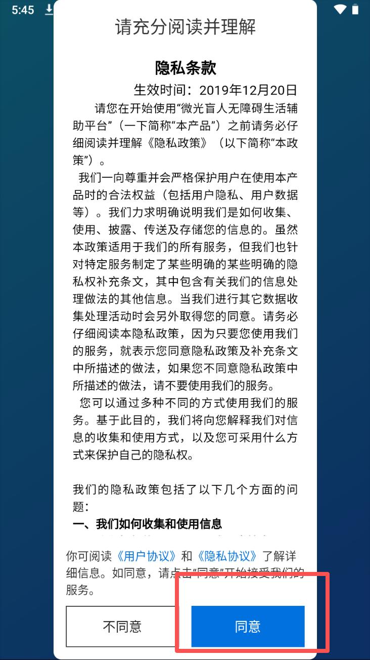 1、阅读并同意隐私条款:在开始使用前,请仔细阅读并同意隐私政策。