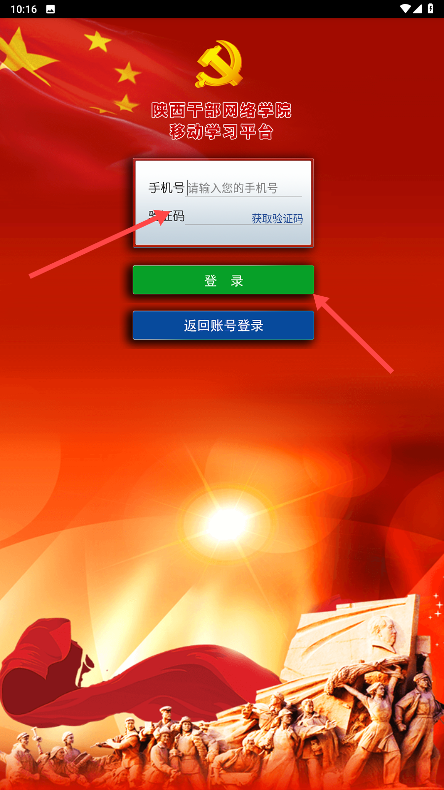 3、输入手机号码,获取验证码,最后点击【登录】
