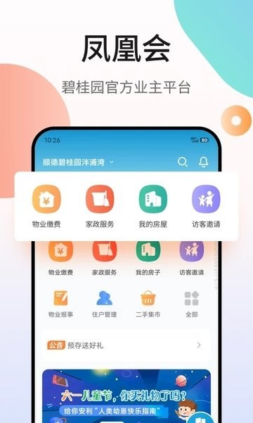 碧桂园凤凰会是碧桂园业主的贴心管家,小区大小事都能轻松搞定。家里需要报修、物业有问题要反馈,手机一点就有专人处理。最新社区公告、便民服务随时查,邻里互动也方便。住在碧桂园,有这个省心多了。