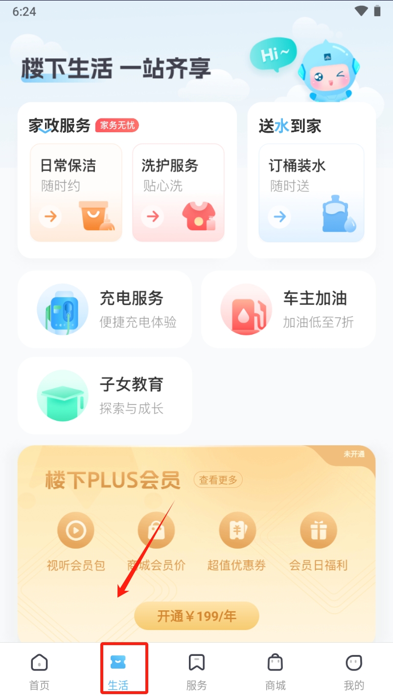 2、浏览生活服务:在“生活”页面查看各类家政和便民服务。