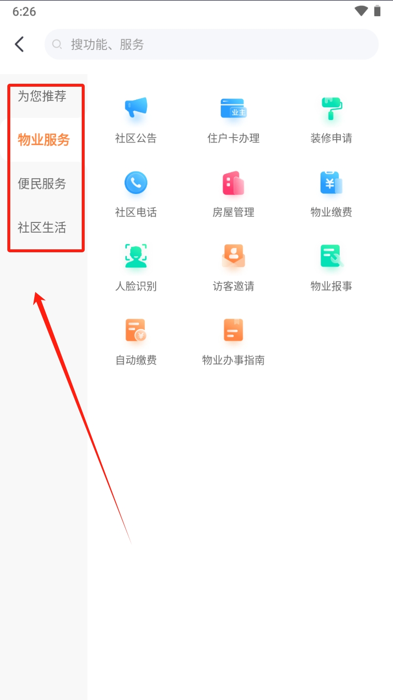 3、选择物业服务:点击“物业服务”选项,获取更多社区相关信息。