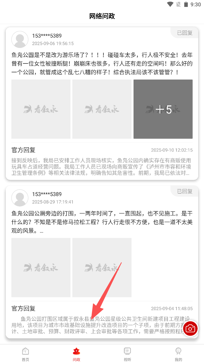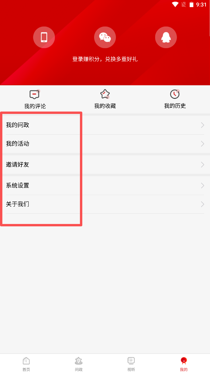 4、进入“我的”页面,查看和参与“我的问政”等个人信息管理功能。