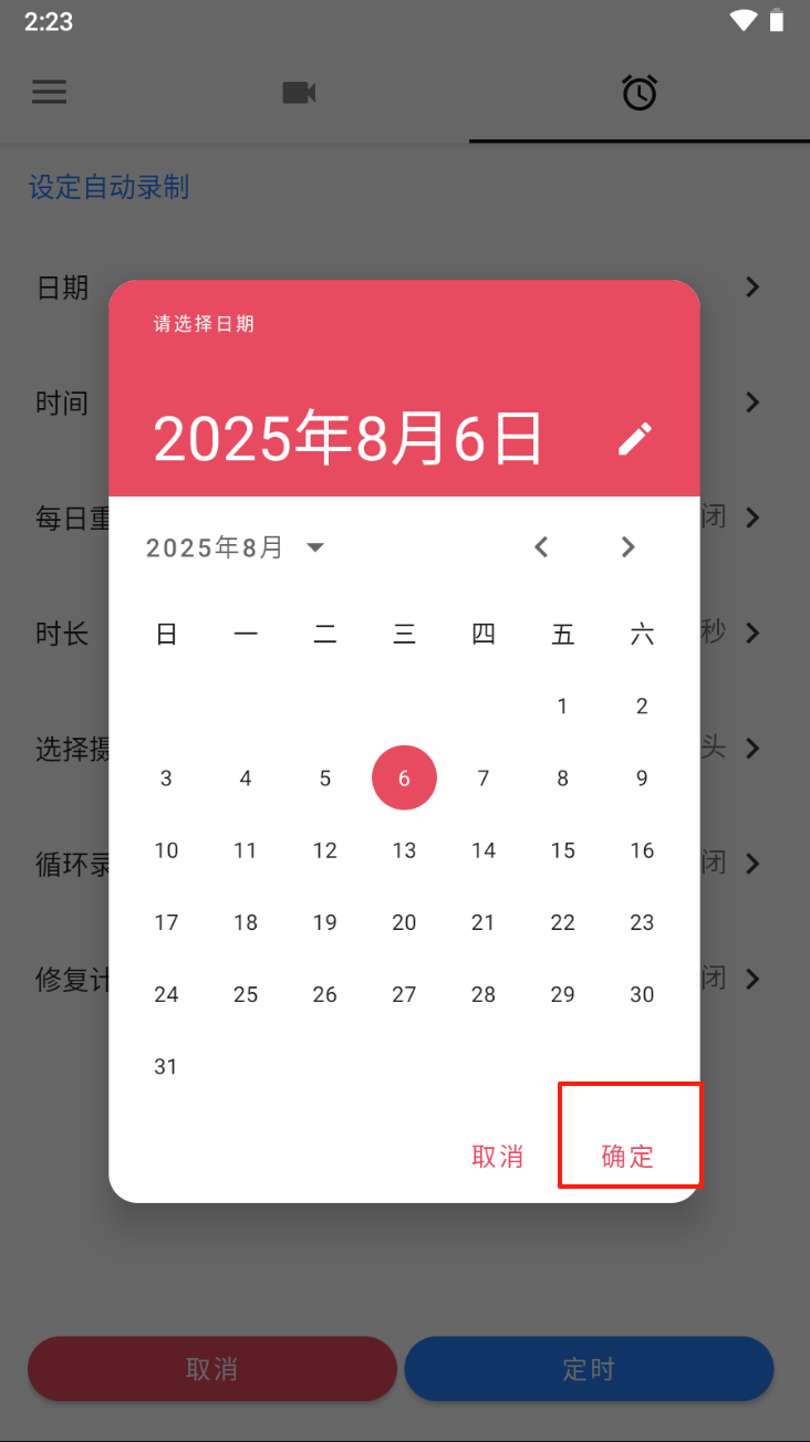 3、在日期选择界面选择所需日期。点击“确定”完成日期设置。