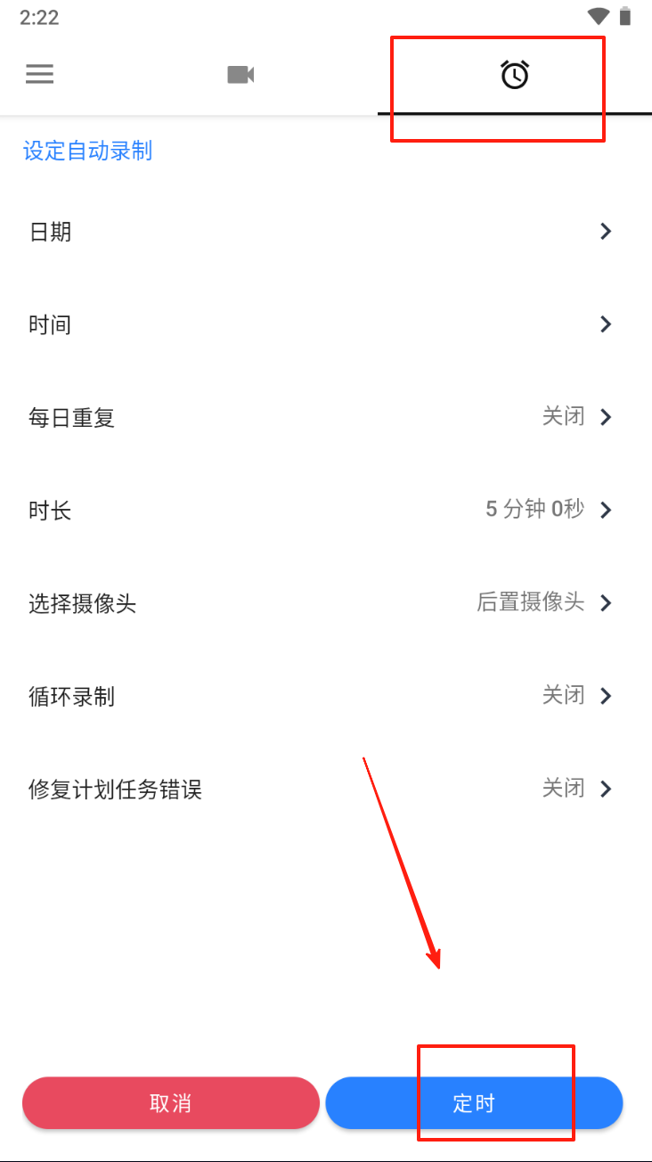 2、点击齿轮图标进入设置。选择“日期”和“时间”设置自动录制计划。