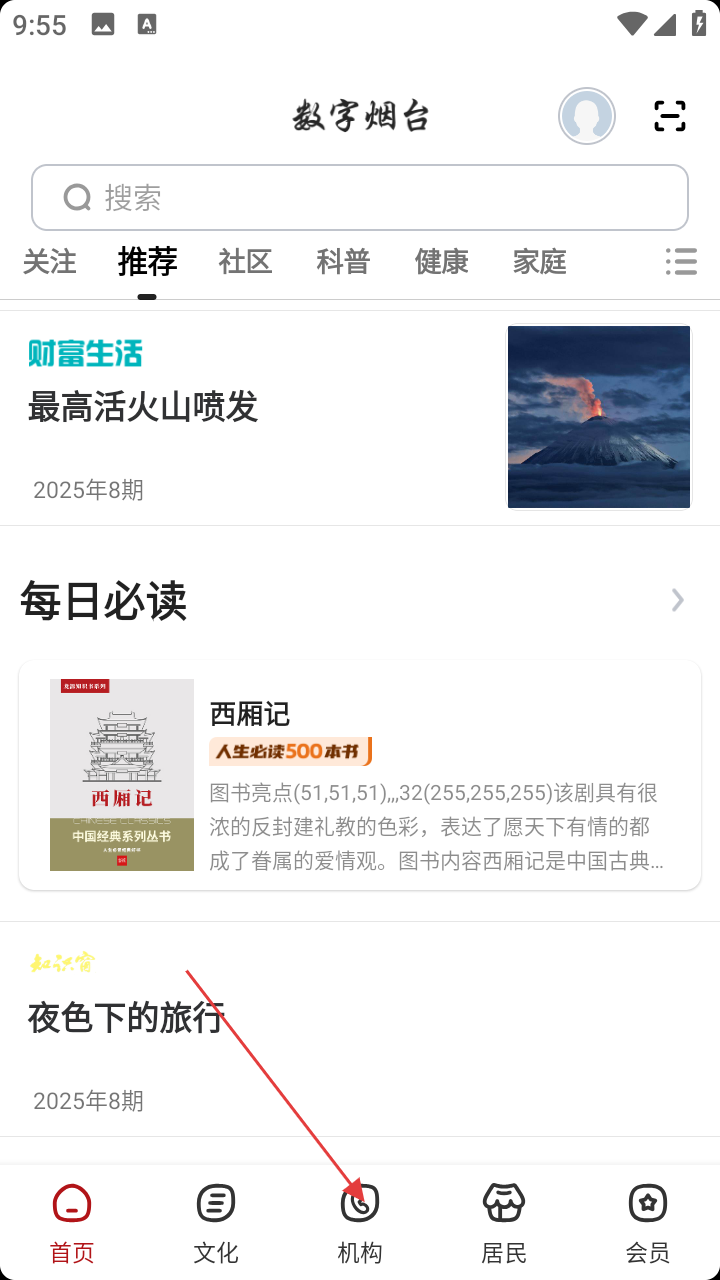 1、打开数字烟台,点底部【机构】,进入机构服务板块。