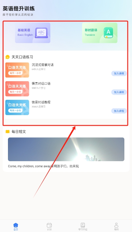 2、进入首页后,选择适合自己的英语课程,系统将自动推荐相关模块,并根据个人情况调整学习计划。