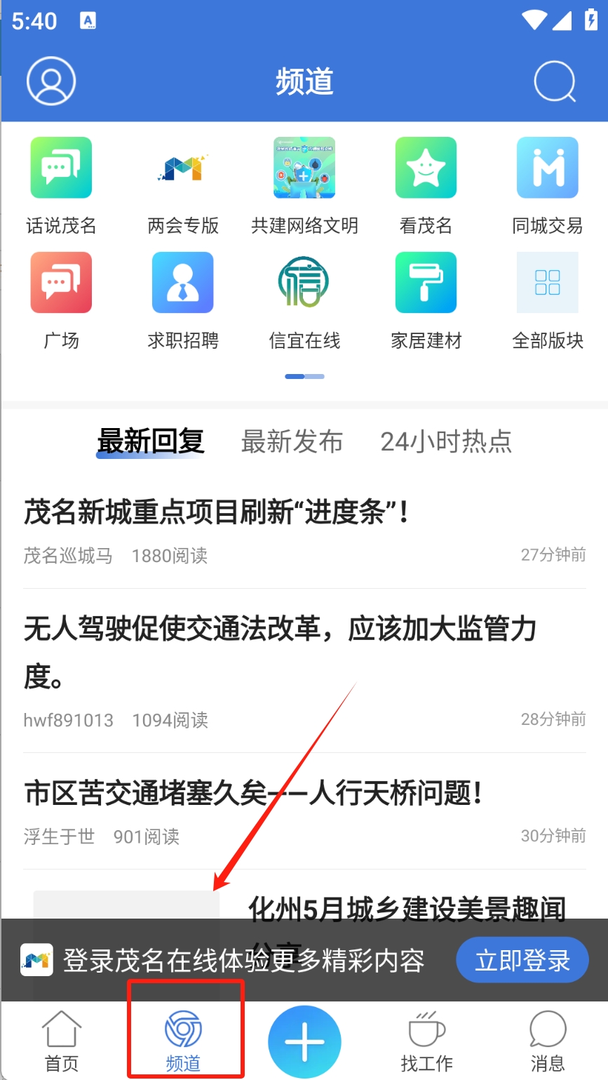 2、在频道页面,浏览“最新回复”和“24小时热点”,了解社区讨论和热门话题。