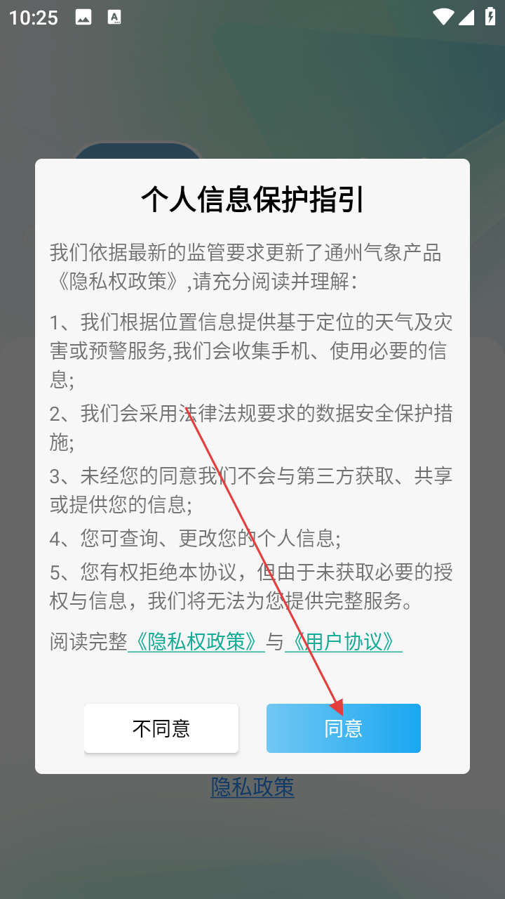 1、阅读【个人信息保护指引】内容,确认后点击【同意】,开启使用流程。