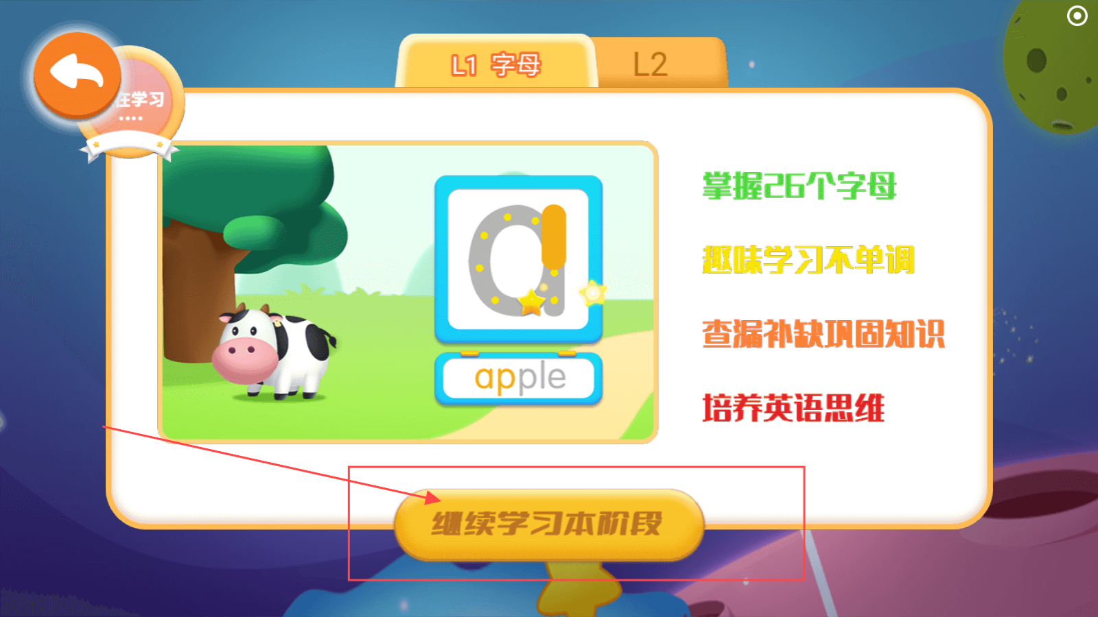 1、打开应用,点击【继续学习本阶段】。