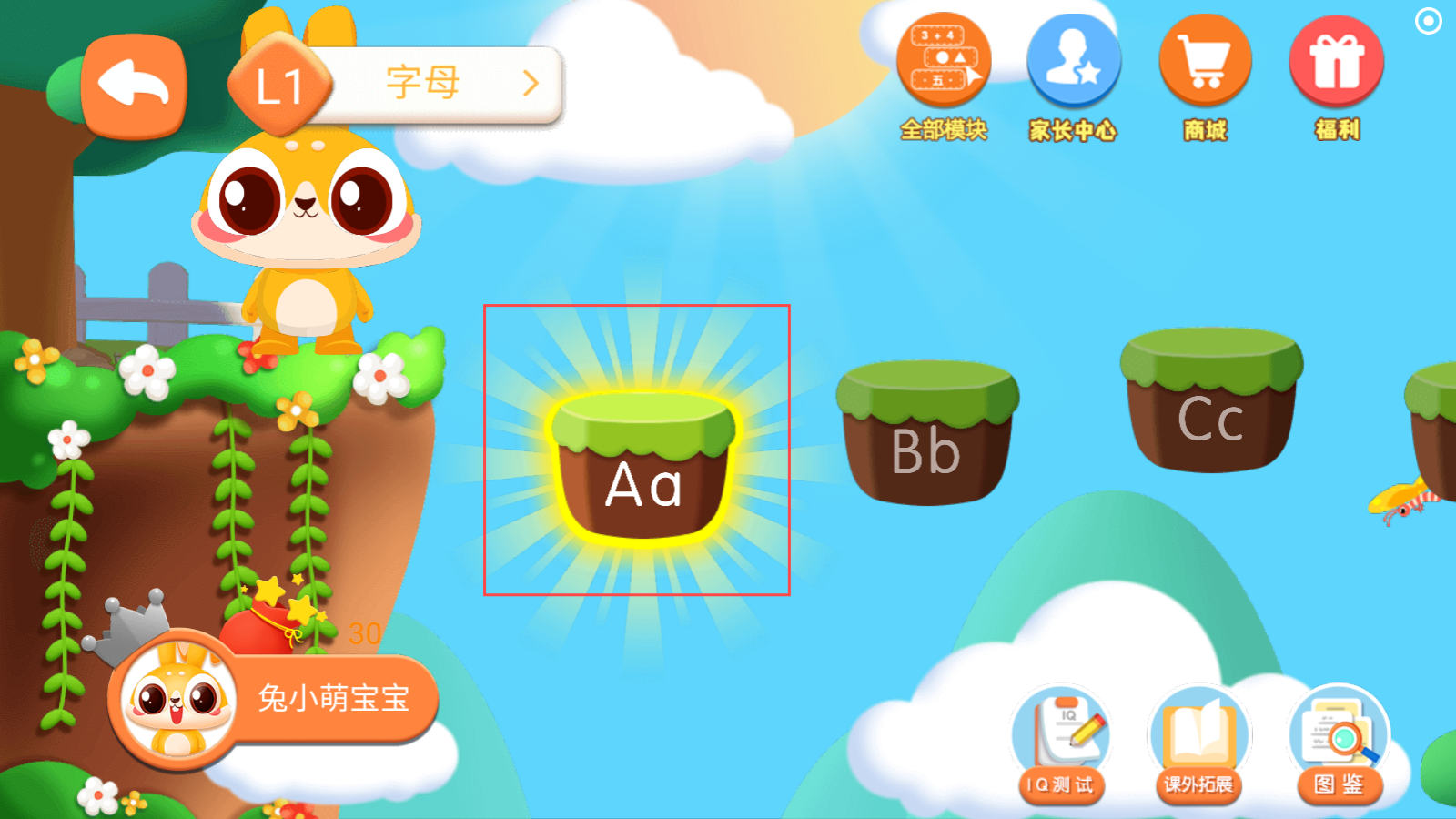 1、字母认知:通过动画演示、发音练习、书写示范,帮助孩子掌握26个英文字母的读写与发音。