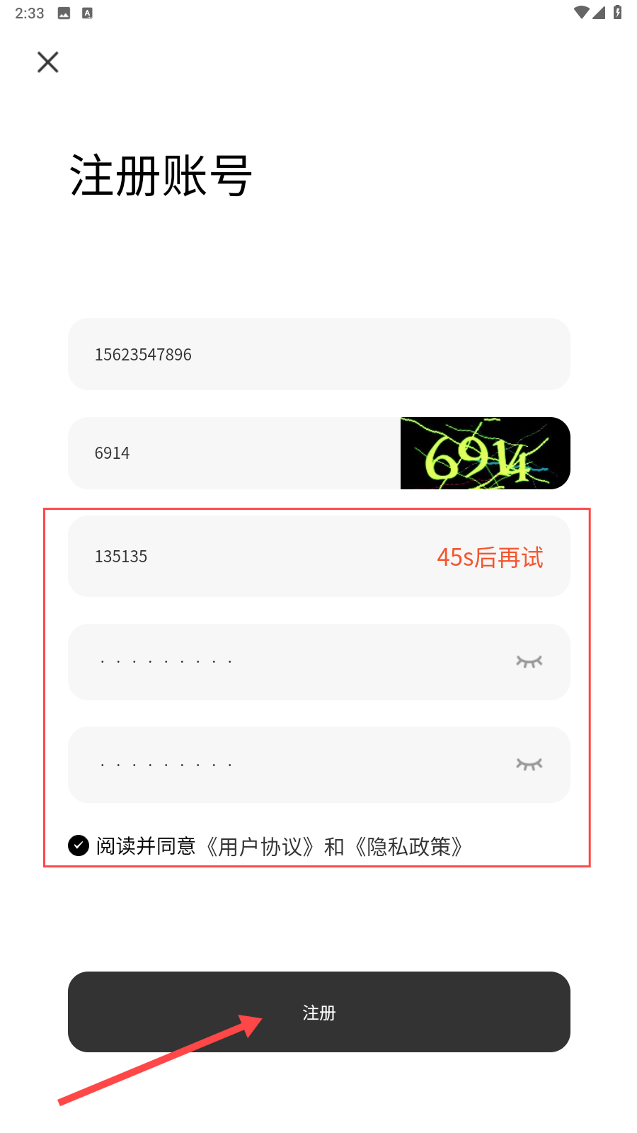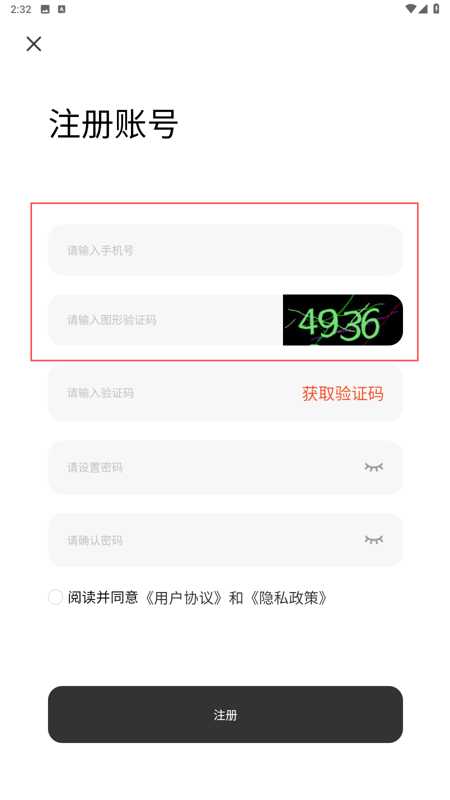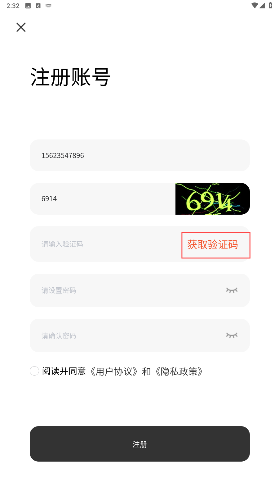 3、输入验证码设置以及确认密码,最后点击【注册】即可。