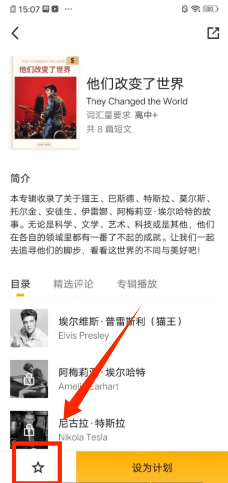 3、在专辑详情页中,找到左下角的星形收藏按钮并点击。