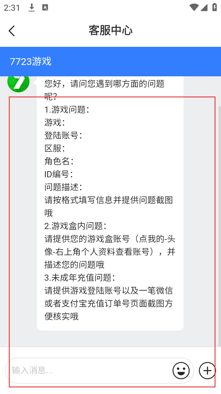 4、在与客服沟通时,需按要求提供游戏问题、游戏盒内问题或未成年充值问题的相关信息及截图,以便客服及时处理。