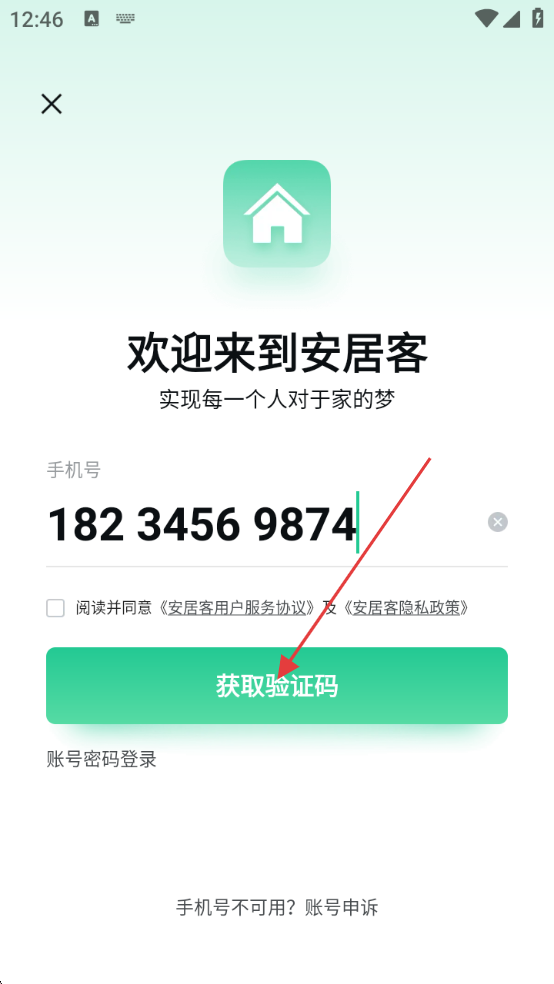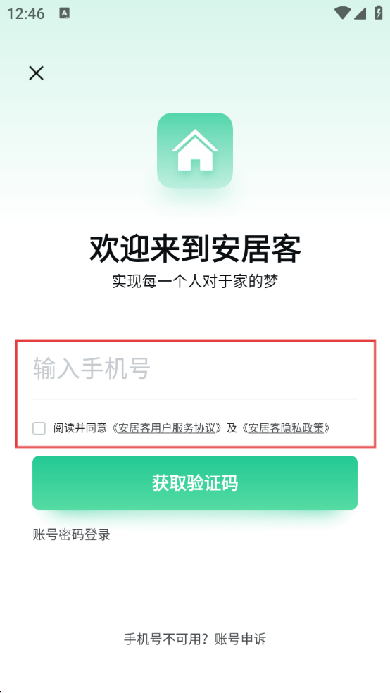 3、在登录页面,准备在手机号输入框输入手机号,并勾选同意相关协议。