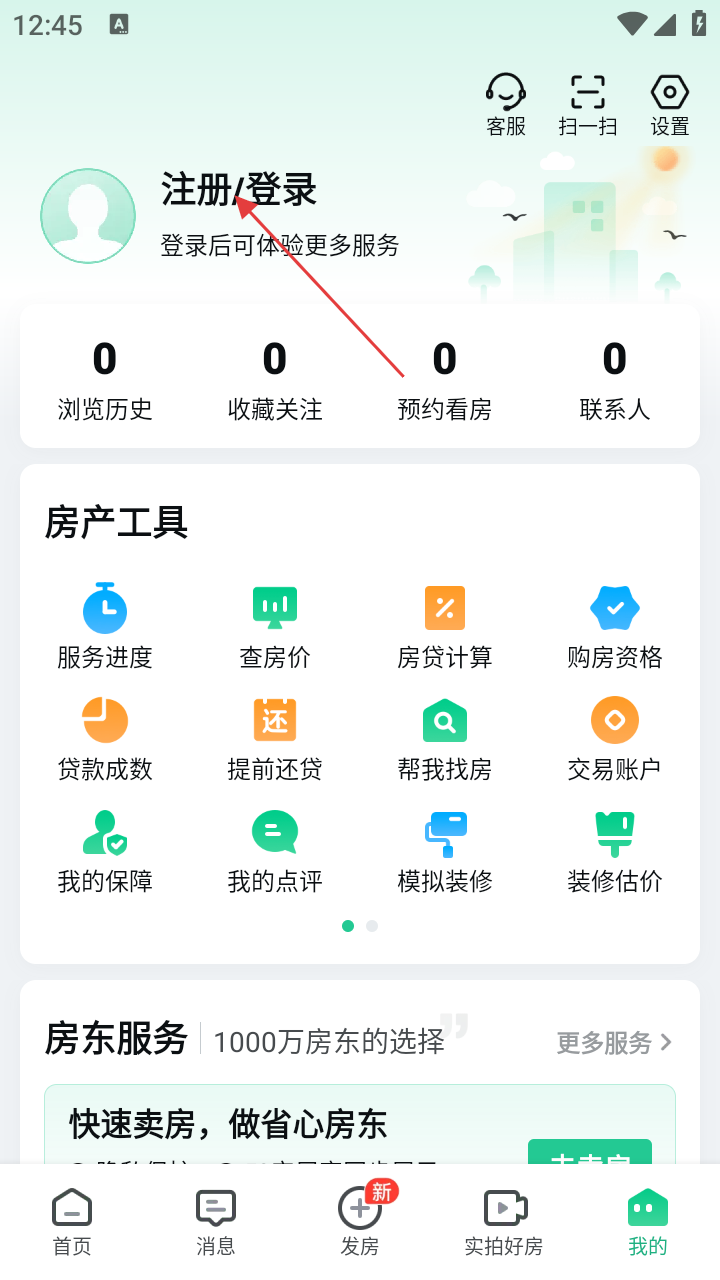 1、在安居客首页,点击右下角【我的】图标,进入个人页面。