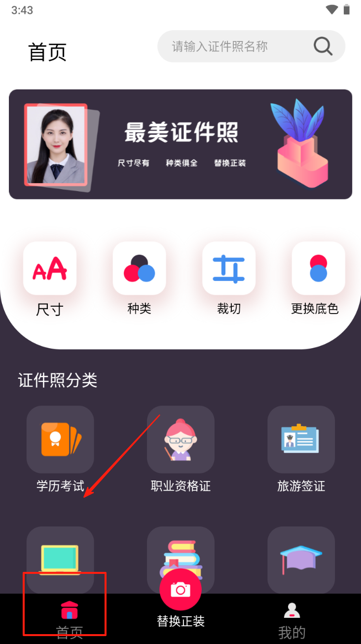 1、启动应用后选择所需证件类型或自定义尺寸参数,系统将自动载入对应规格模板与背景色要求,无需手动查询各类证件照标准。