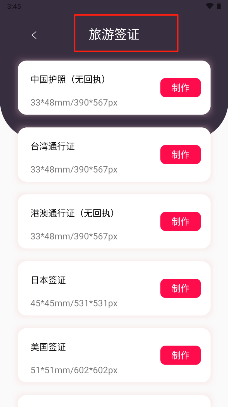 4、在“旅游签证”分类中选择签证类型,点击“制作”生成照片。