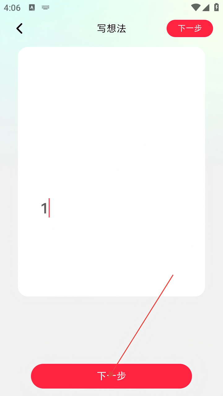 4、内容输入完成后,点击【下一步】,推进文字笔记发布流程。