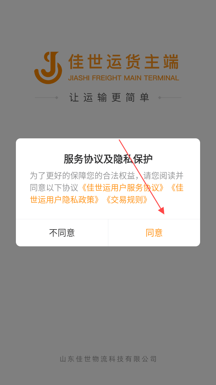 1、首次打开应用,阅读服务协议及隐私保护内容后,点击【同意】。