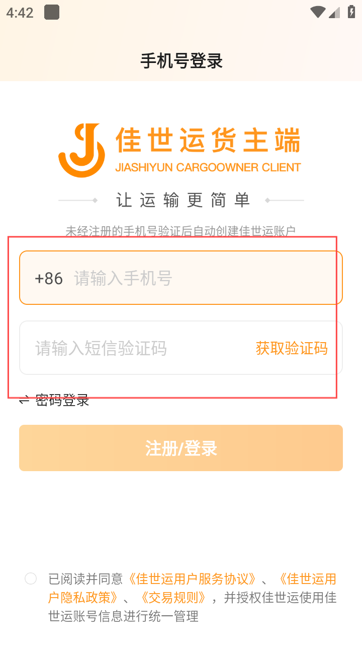 2、进入首页,若需发货,先完成登录。点击【我的】,选择手机号登录,输入手机号、验证码完成登录。