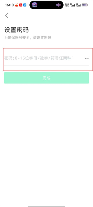 4、为确保账号安全,需设置密码,设置后点击“完成”即可。
