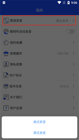 6、此外,点击“我的”,用户还能依据自身需求在中式发音与美式发音之间进行切换;