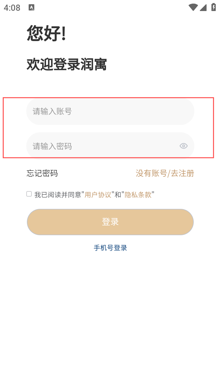 2、点【请先登录/注册】,进入登录页,可选择账号密码登录或【手机号登录】。