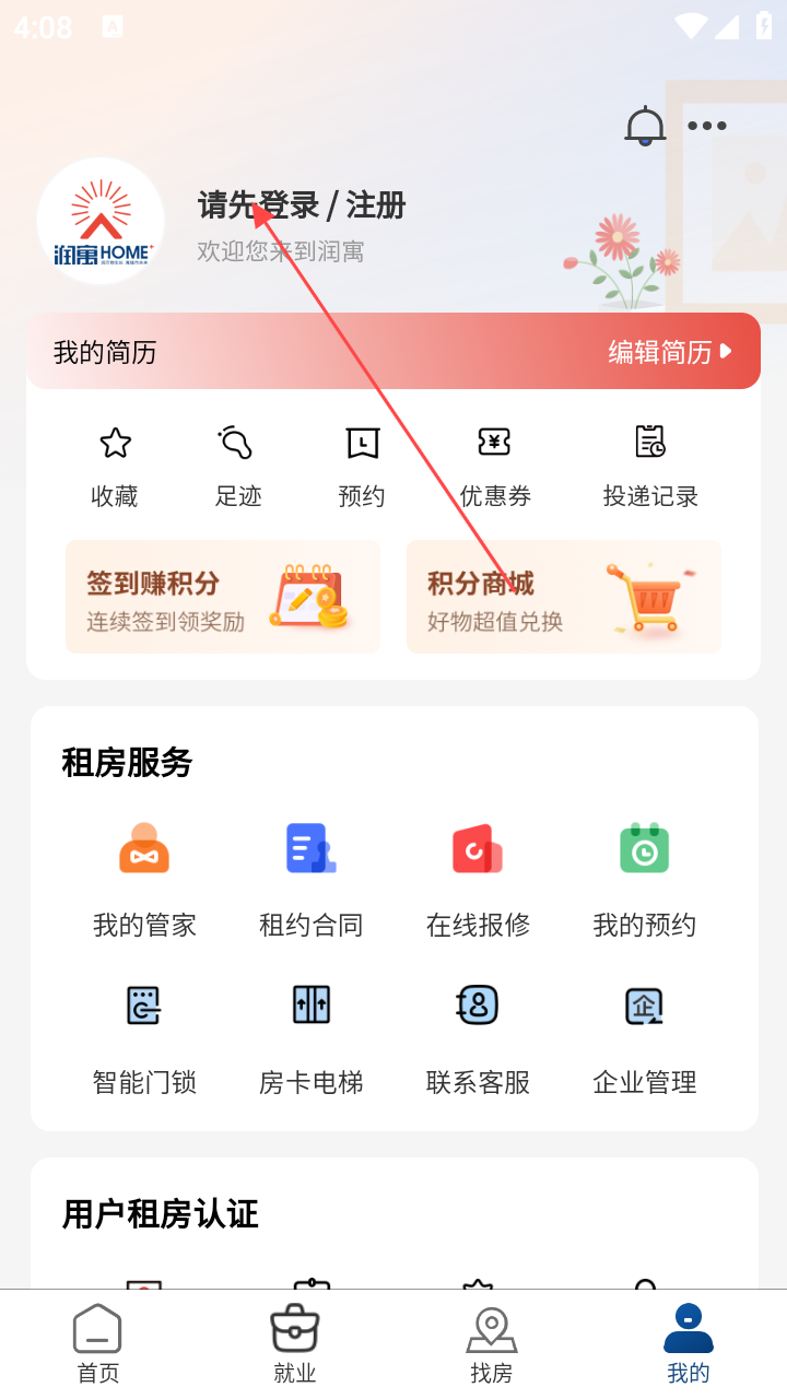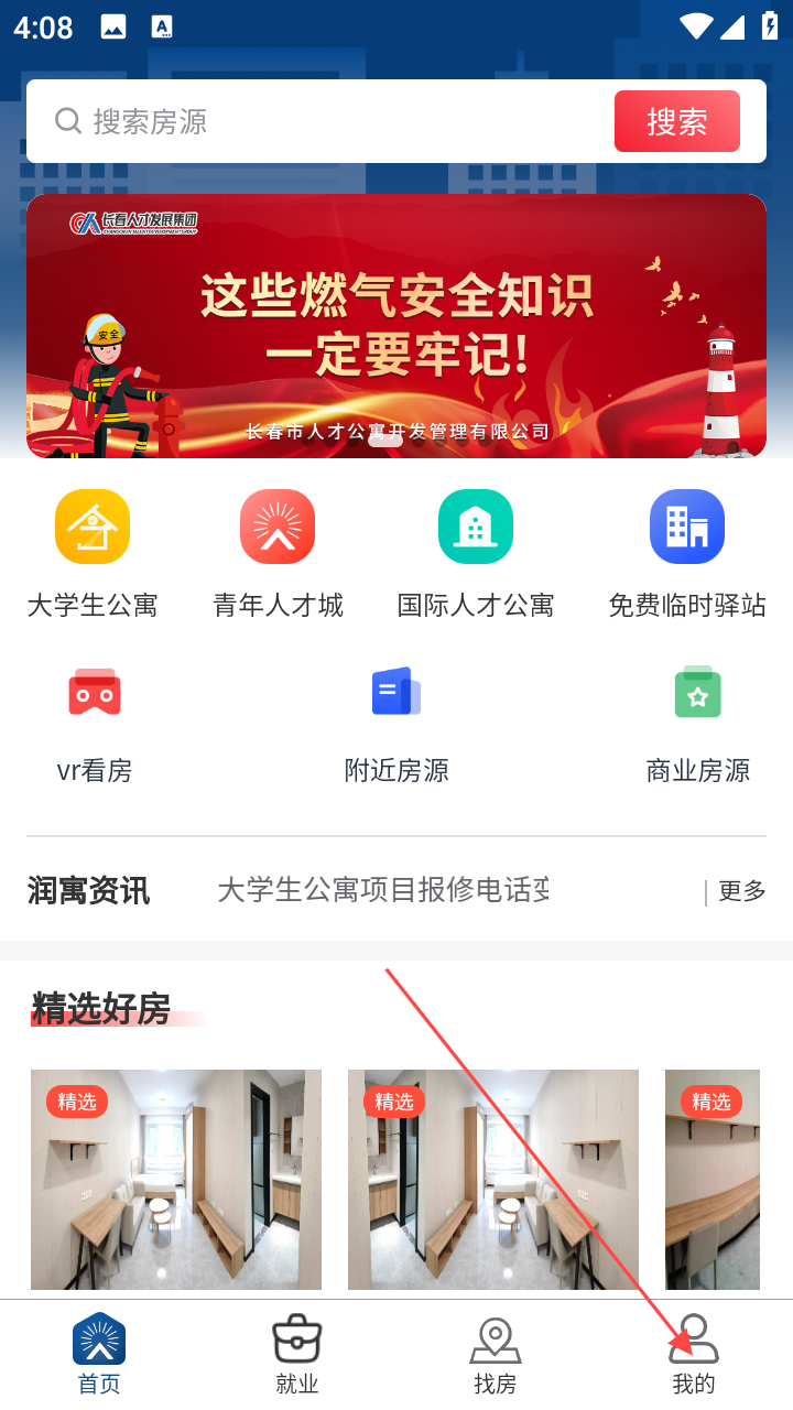 1、打开润寓,在首页点底部【我的】,进入个人中心。