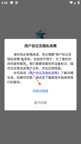 1、打开应用查看协议点击同意。