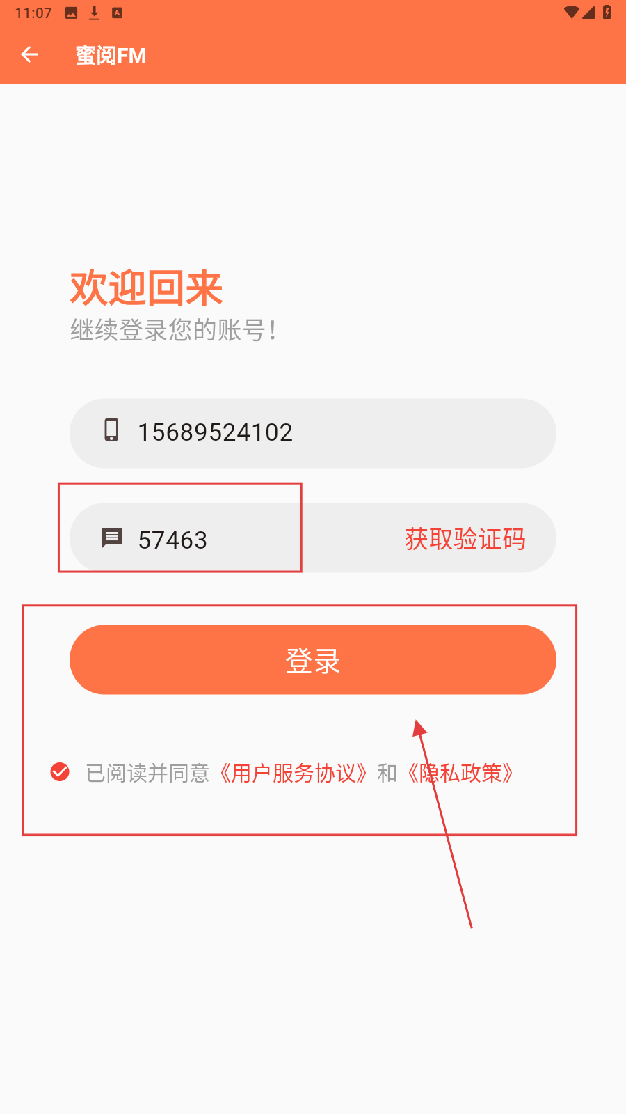 3、勾选同意协议,点击【登录】,完成APP登录。