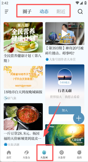 3、滑到圈子加入“全民营养计划”,发帖问神舟碎片是否碍事。