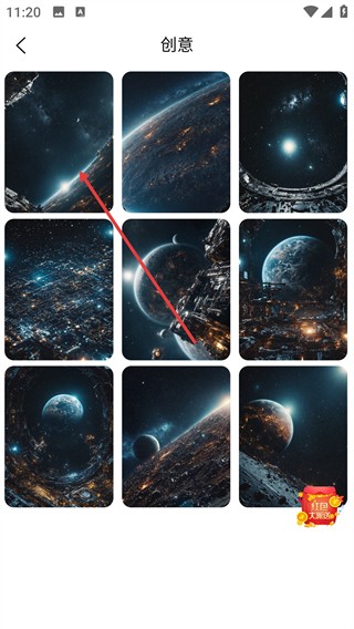 进入【创意】分类页面后,能查看该类别下所有内容的缩略图,点击任意缩略图,就能进入对应内容的详情浏览页面。