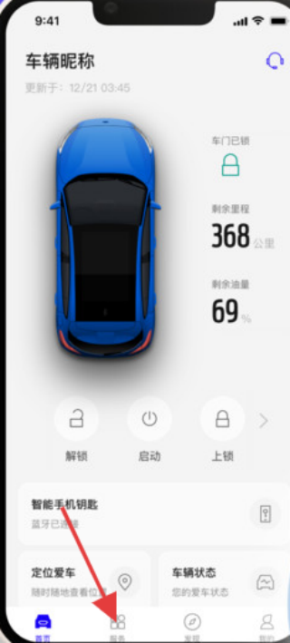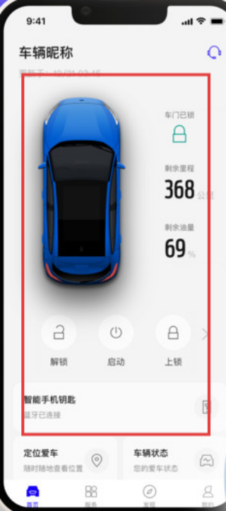1、打开应用进入首页此处可以查看车辆的基本情况。