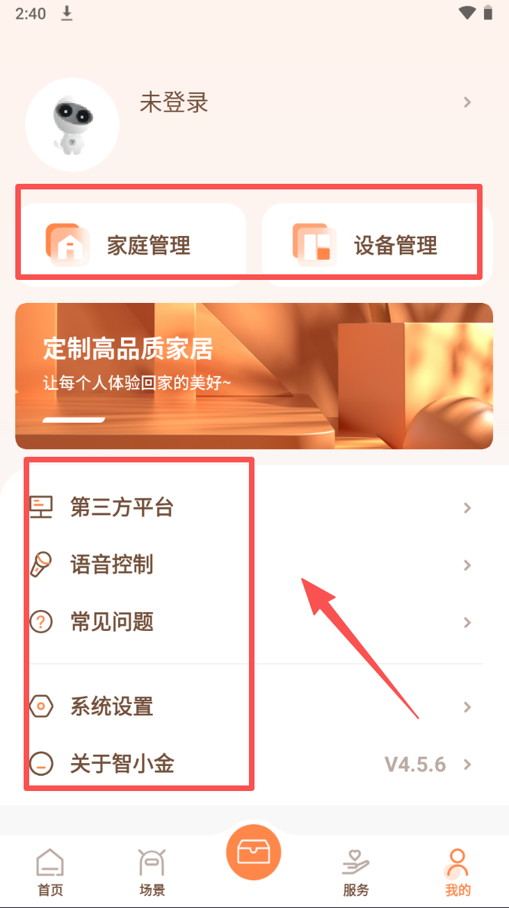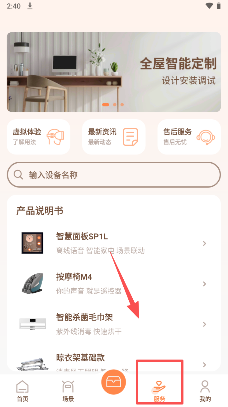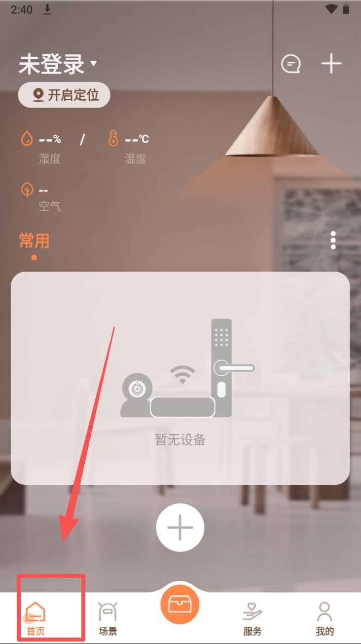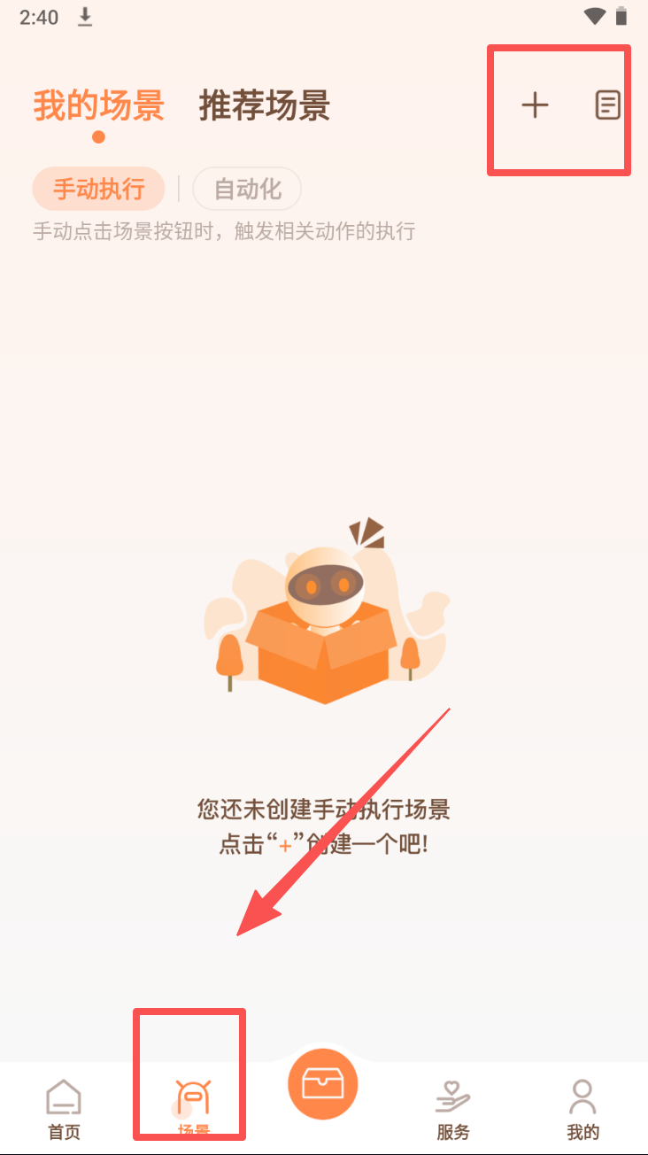 3、点击屏幕底部导航栏中 “场景” 图标,进入场景页面。