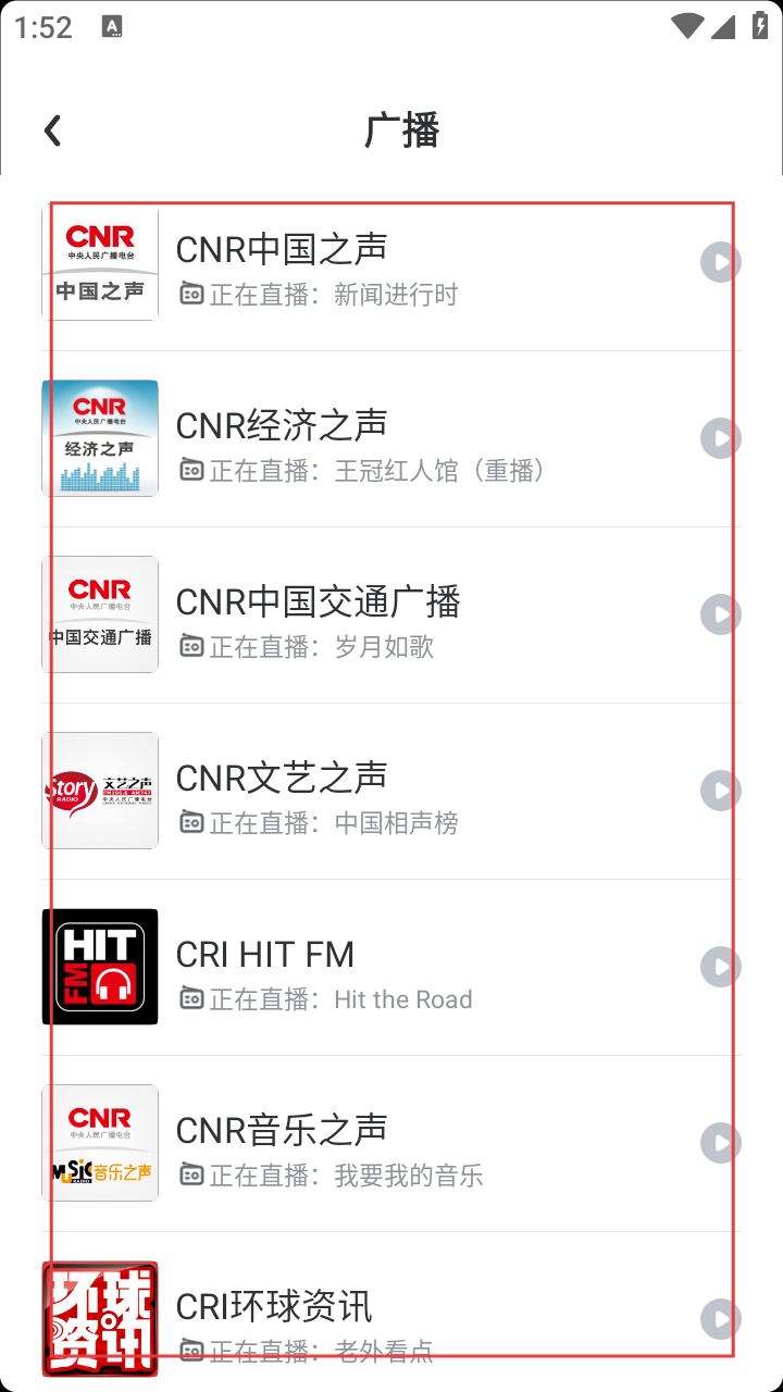 3、在广播频道列表页面,可选择【CNR中国之声】【CNR经济之声】等广播频道。