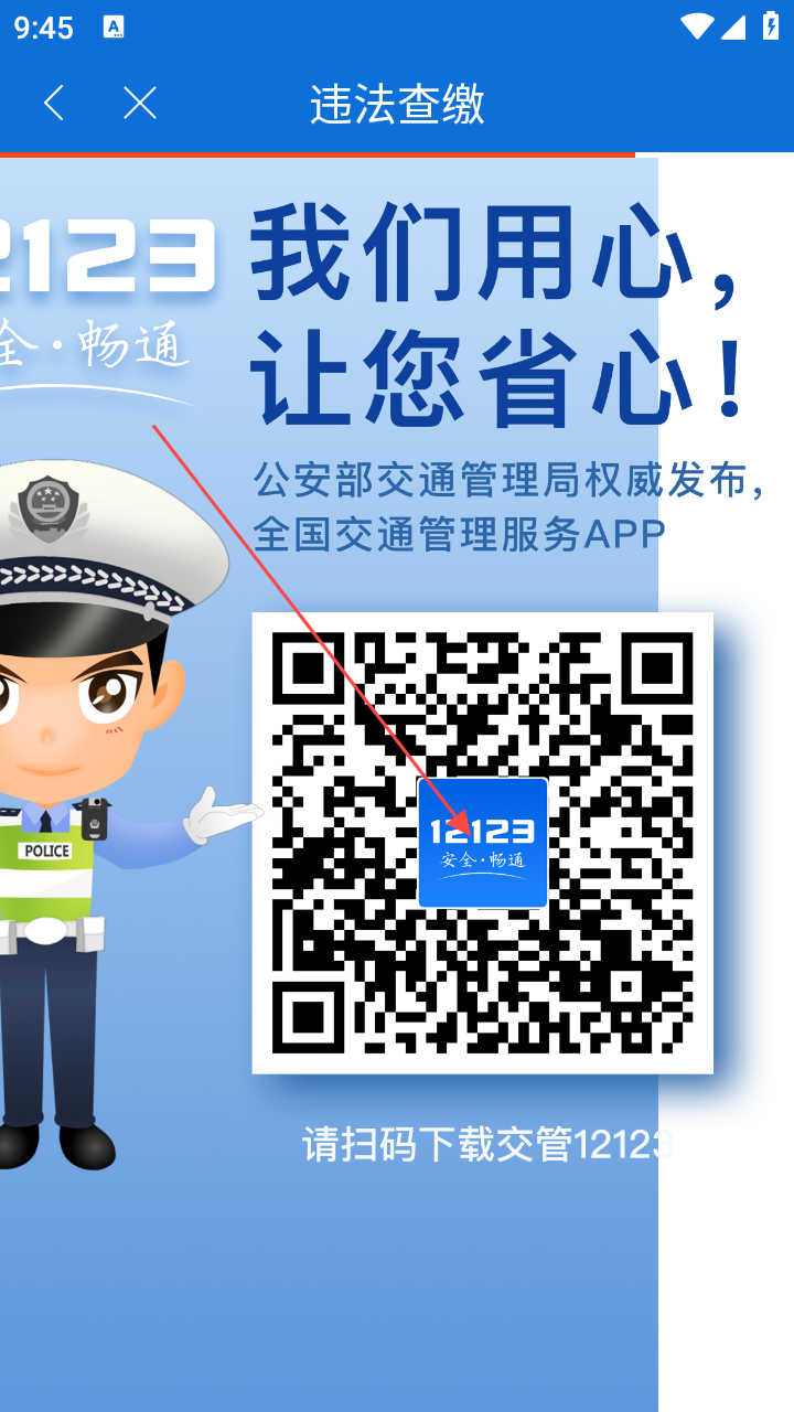 4、进入违法查缴页扫描交管12123二维码,下载过后即可缴纳罚单。