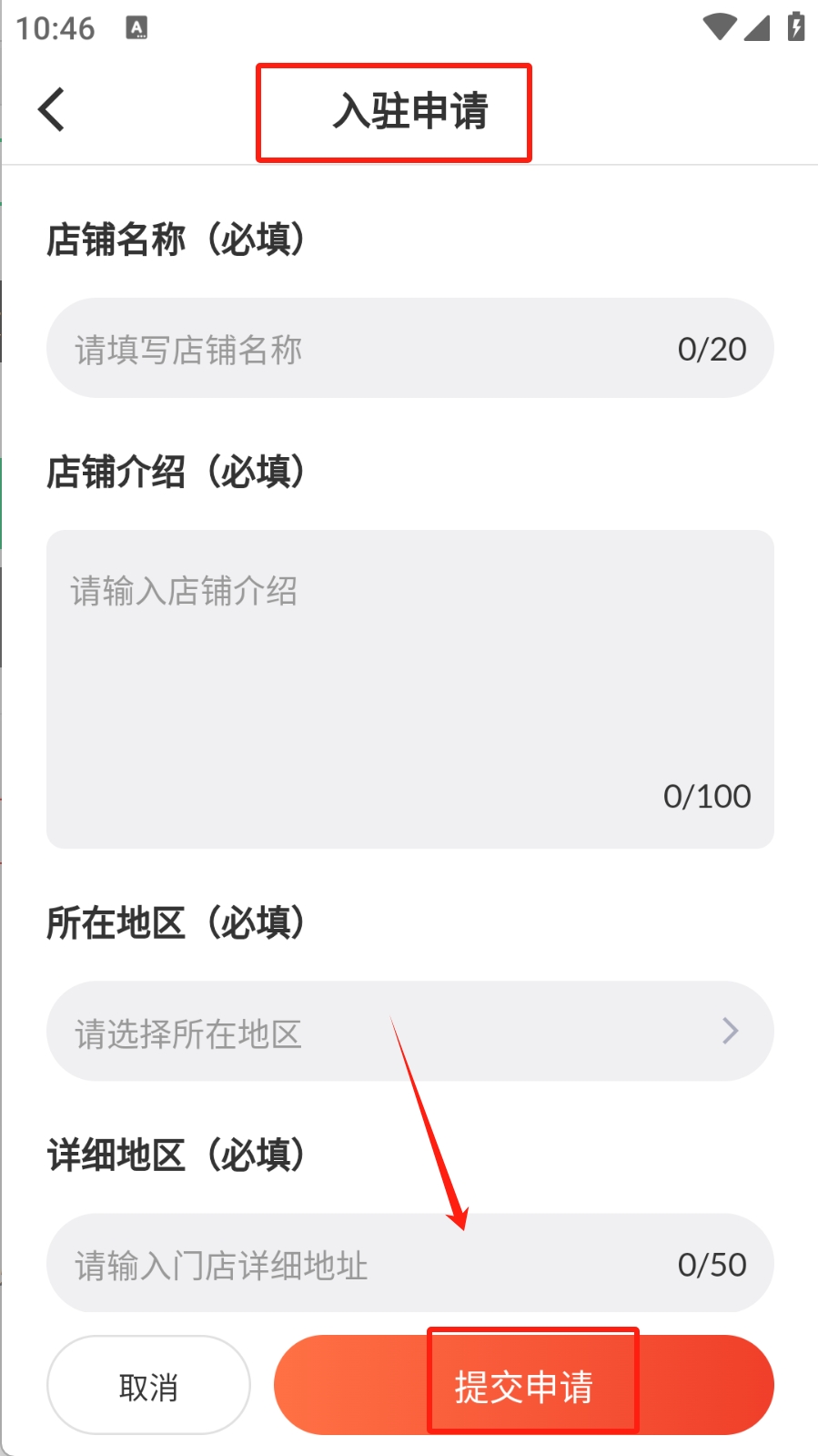 3、填写入驻申请表。包括店铺名称、店铺介绍、所在地区和详细地址等信息。这些信息将帮助你的店铺在平台上更好地展示和运营。
