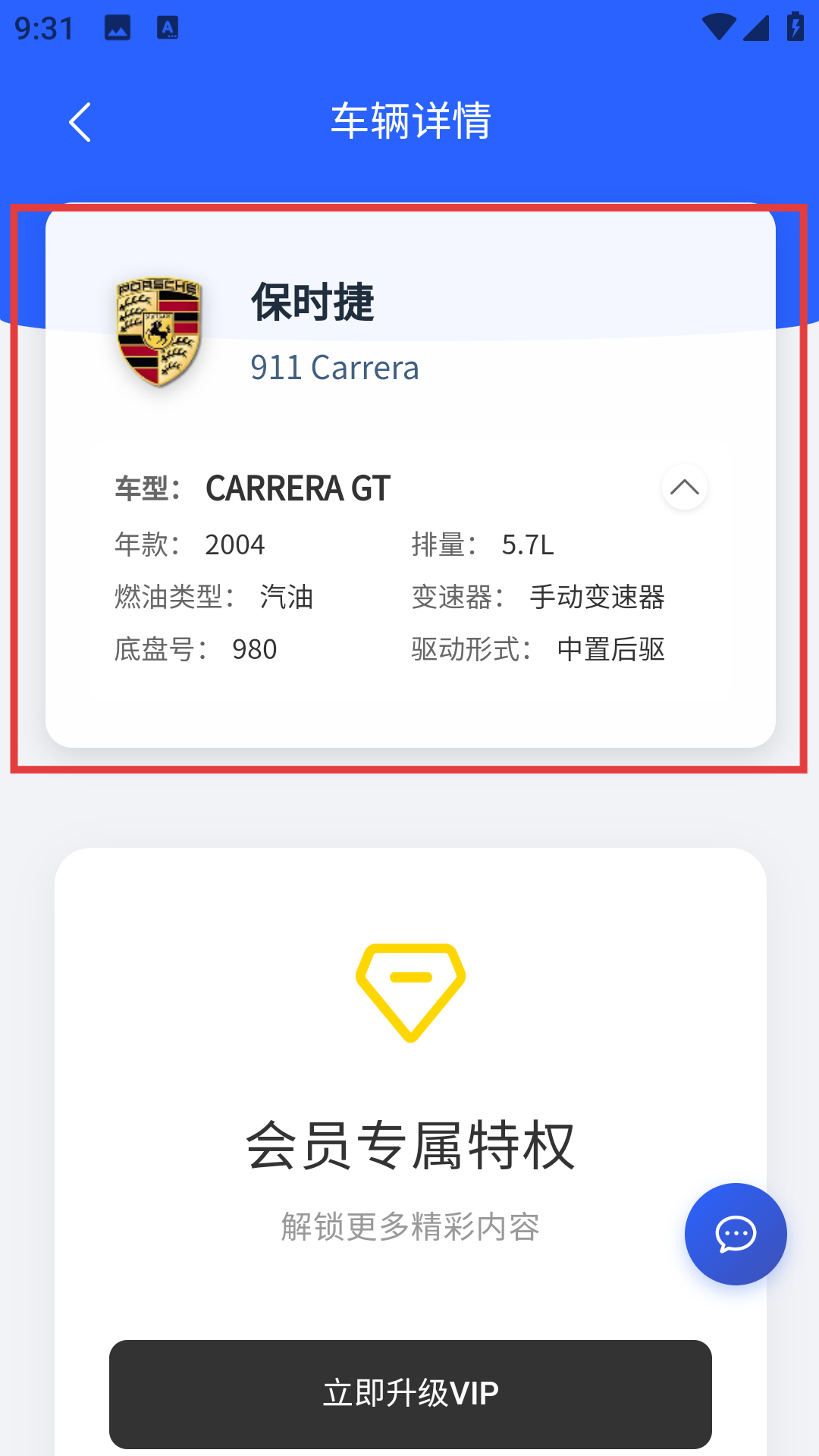 4、在【车辆详情】页,查看保时捷911Carrera的车型、年款、排量等信息。