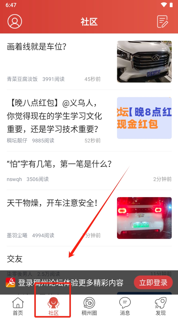 1、点击首页底部的“社区”图标。进入社区页面浏览帖子。