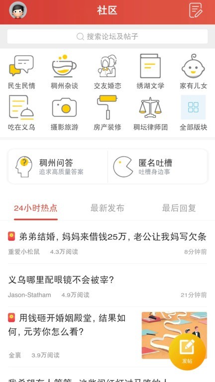 4、论坛社区支持发帖互动,设有分类讨论区,市民可以交流生活经验,反映民生问题,参与城市共建。