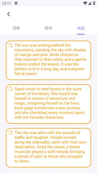 2、短句内容多种多样,既有英语内容,还有翻译内容,更好掌握。