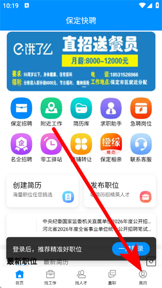1、打开保定快聘,点击底部我的,进入个人页面。