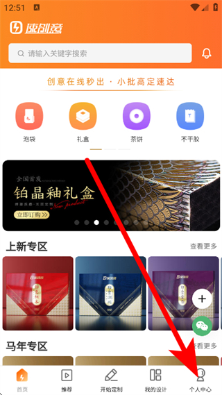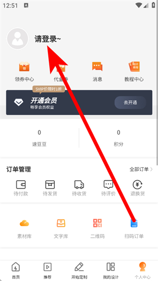 1、启动速创意应用,找到底部导航栏的“个人中心”选项并点击,即可进入个人中心页面。