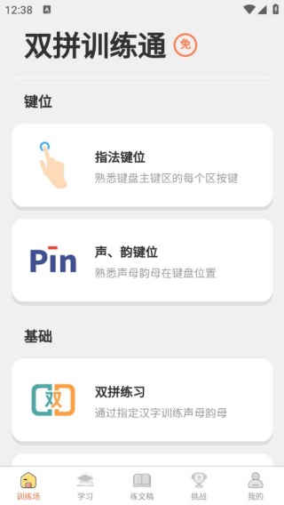 1、进入到训练场,有各种指法练习去掌握,方便流畅掌握输入功能。